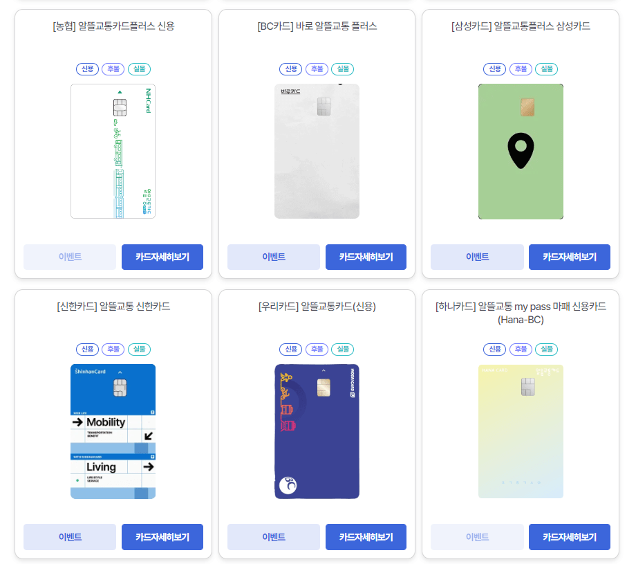 위에 알려드린 마일리지 혜택에 더해 각 카드사의 카드 별로 교통비 할인이 있습니다. 그리고 이외의 편의점, 카페 등 다른 할인혜택도 제공하고 있으니 여러분 각자의 소비패턴을 고려해 잘 비교해 보시고 알맞은 카드를 발급받으시길 바랍니다.